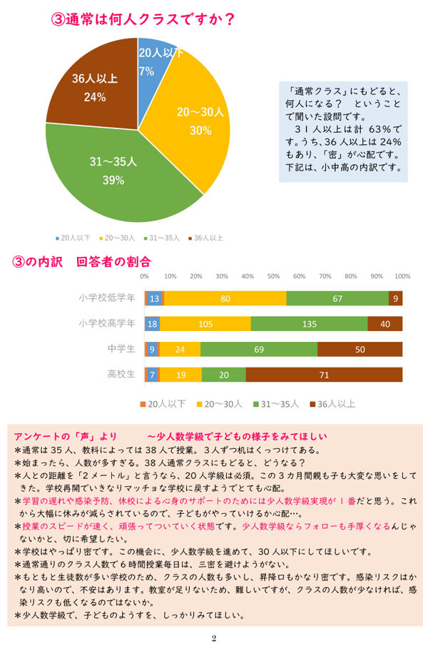 【要請】コロナ禍でも、子どもたちが学び、健やかに学校生活を送れるよう 教育予算を増額し、教職員をふやして少人数学級を実現してください
