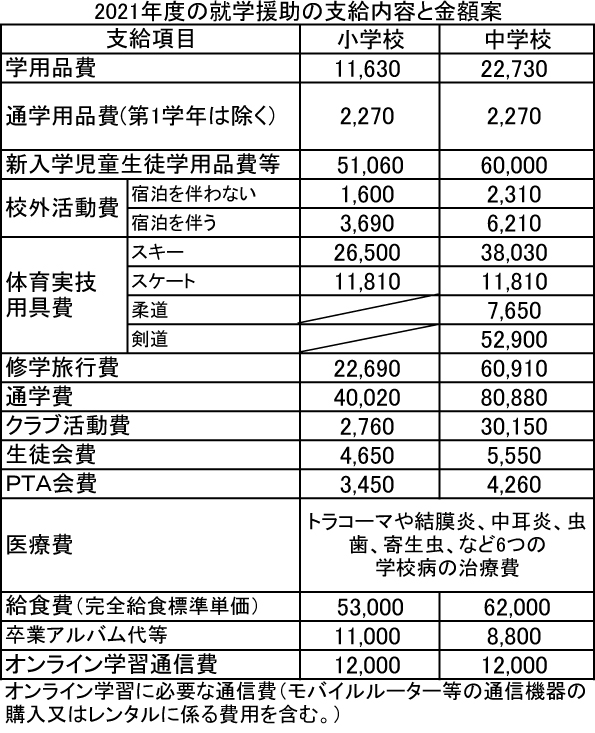 2021年「入学おめでとう」就学援助制度紹介チラシ 中面(ダウンロード)
