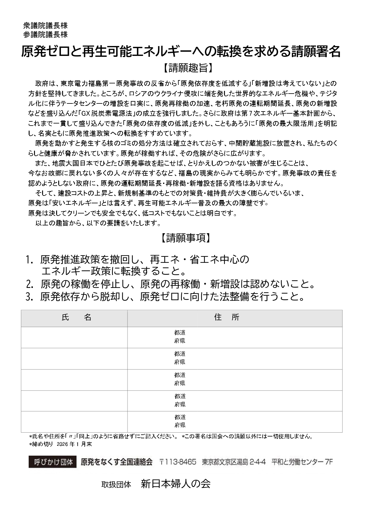 『原発ゼロと再生可能エネルギーへの転換を求める請願署名』 をダウンロードしご活用ください