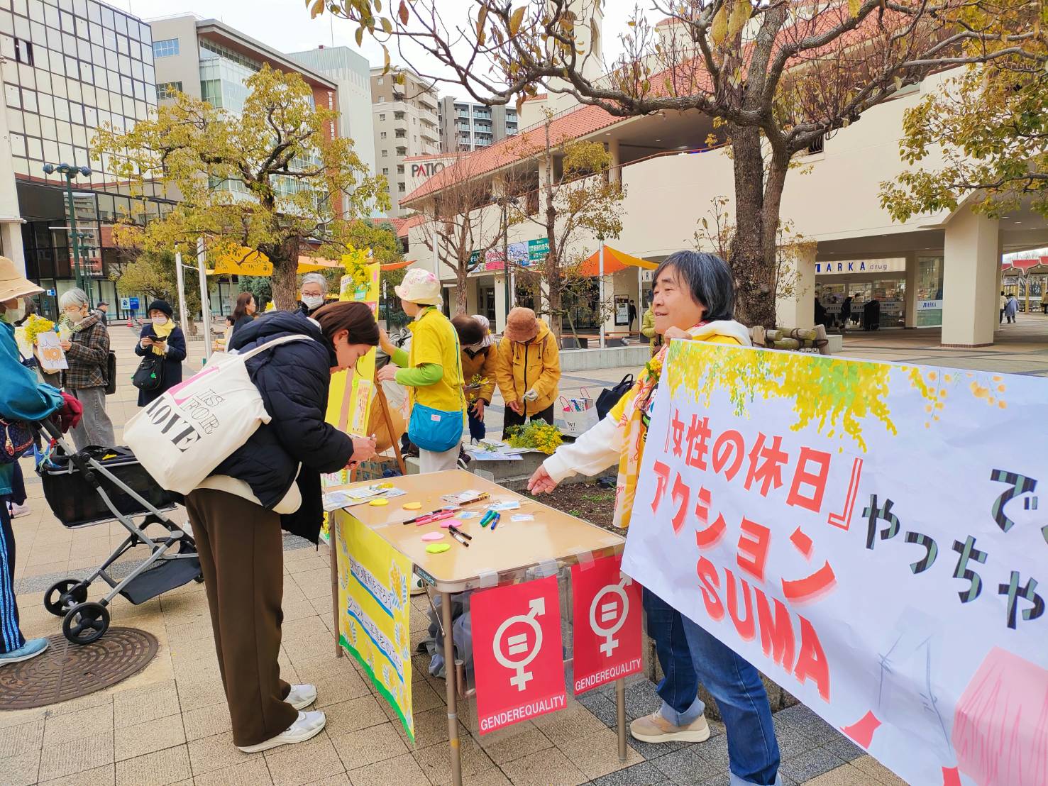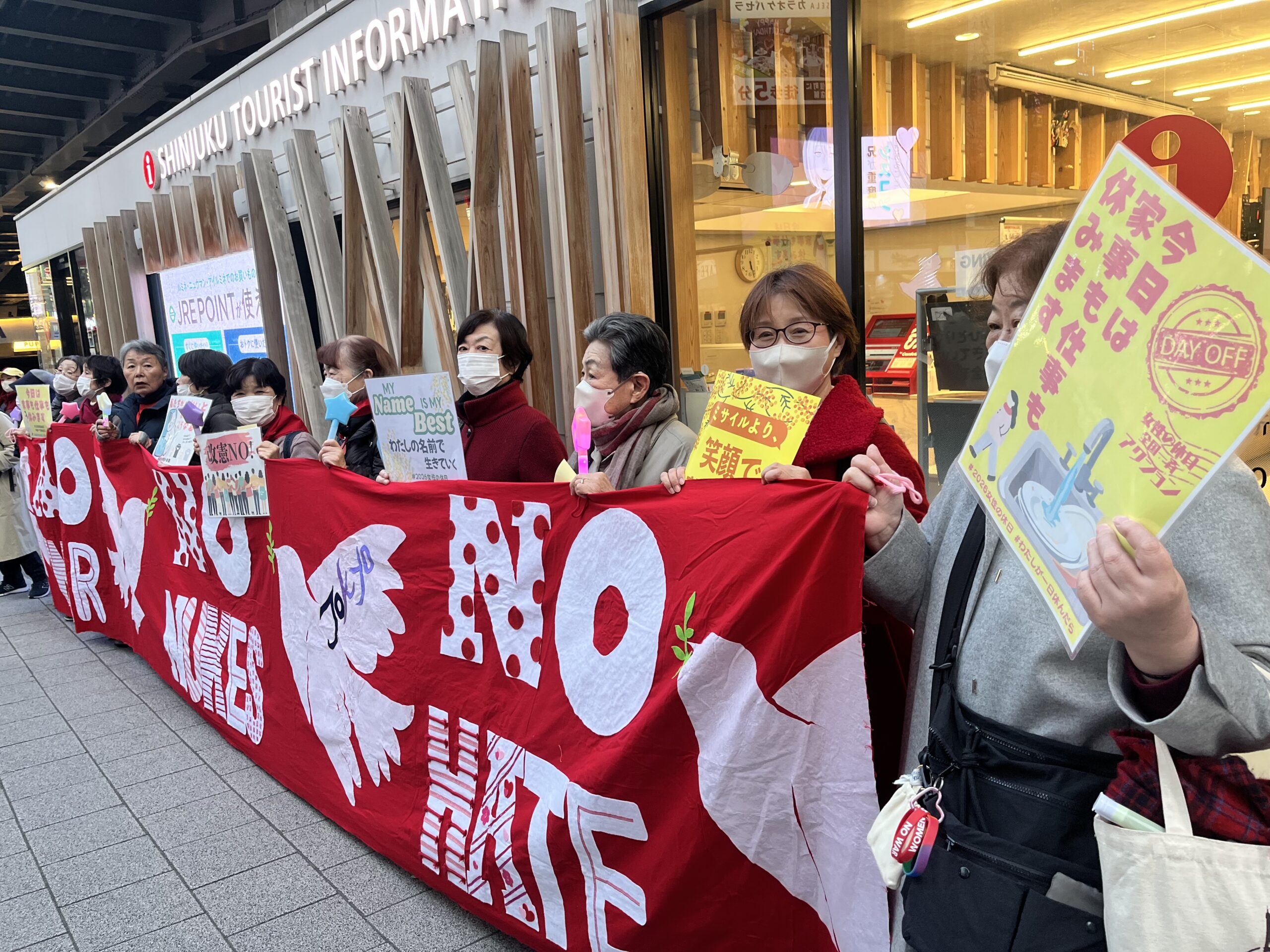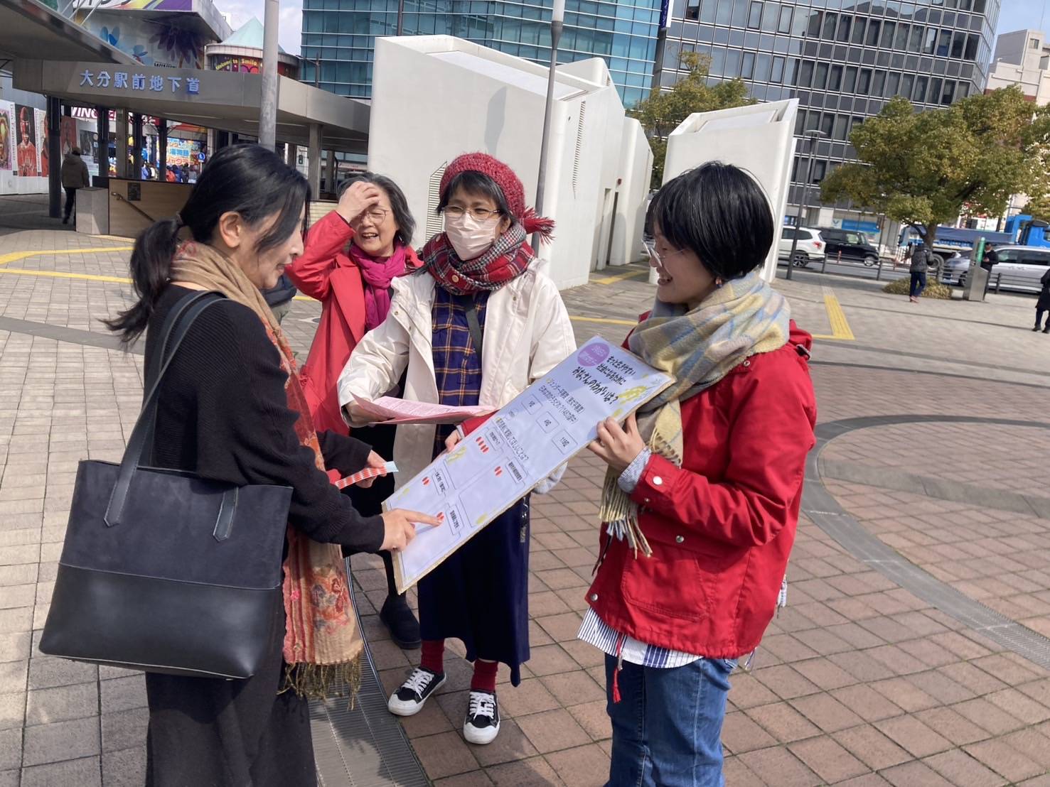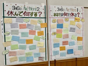 3月6~8日、日本版「女性の休日」にとりくみ、新婦人は全国350カ所で行動しました。集会やスタンディングやシールアンケート、リレートーク、ポストイットデモ、お散歩デモ、しゃべり場、サイコロトーク、「『今日は夕食つくらない!』お食事会」など、多彩にとりくみ、各地で飛び入り参加も。