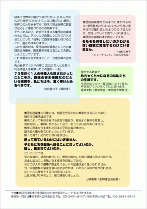 前の記事: 【声明】憲法9条を壊し、日本を海外で戦争する国へとつくり変える 集団的自衛権行使容認は許しません
