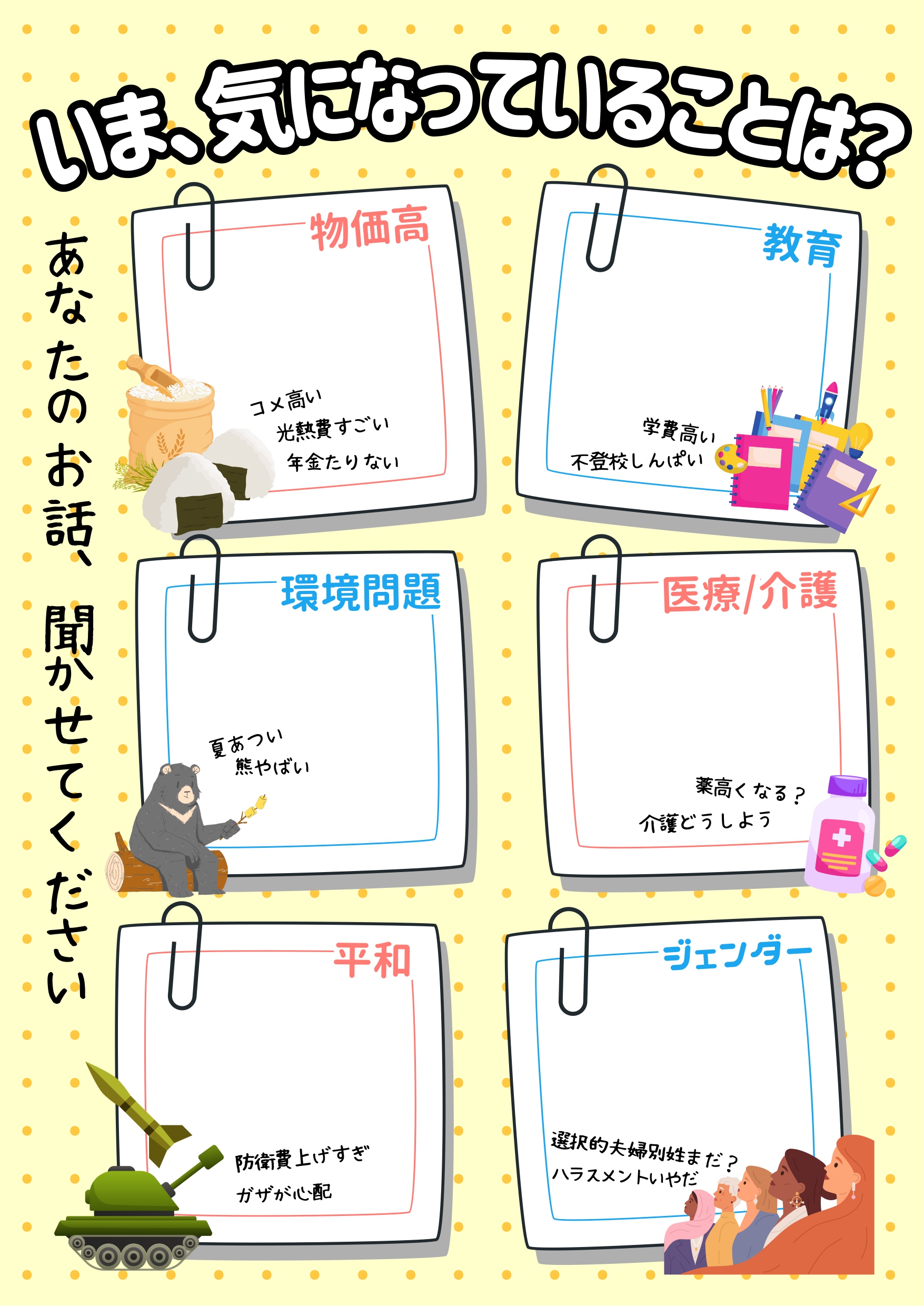 オリジナルのイラスト、印刷してお使いいただける素材、アンケート、署名用紙などこちらからダウンロードできます。