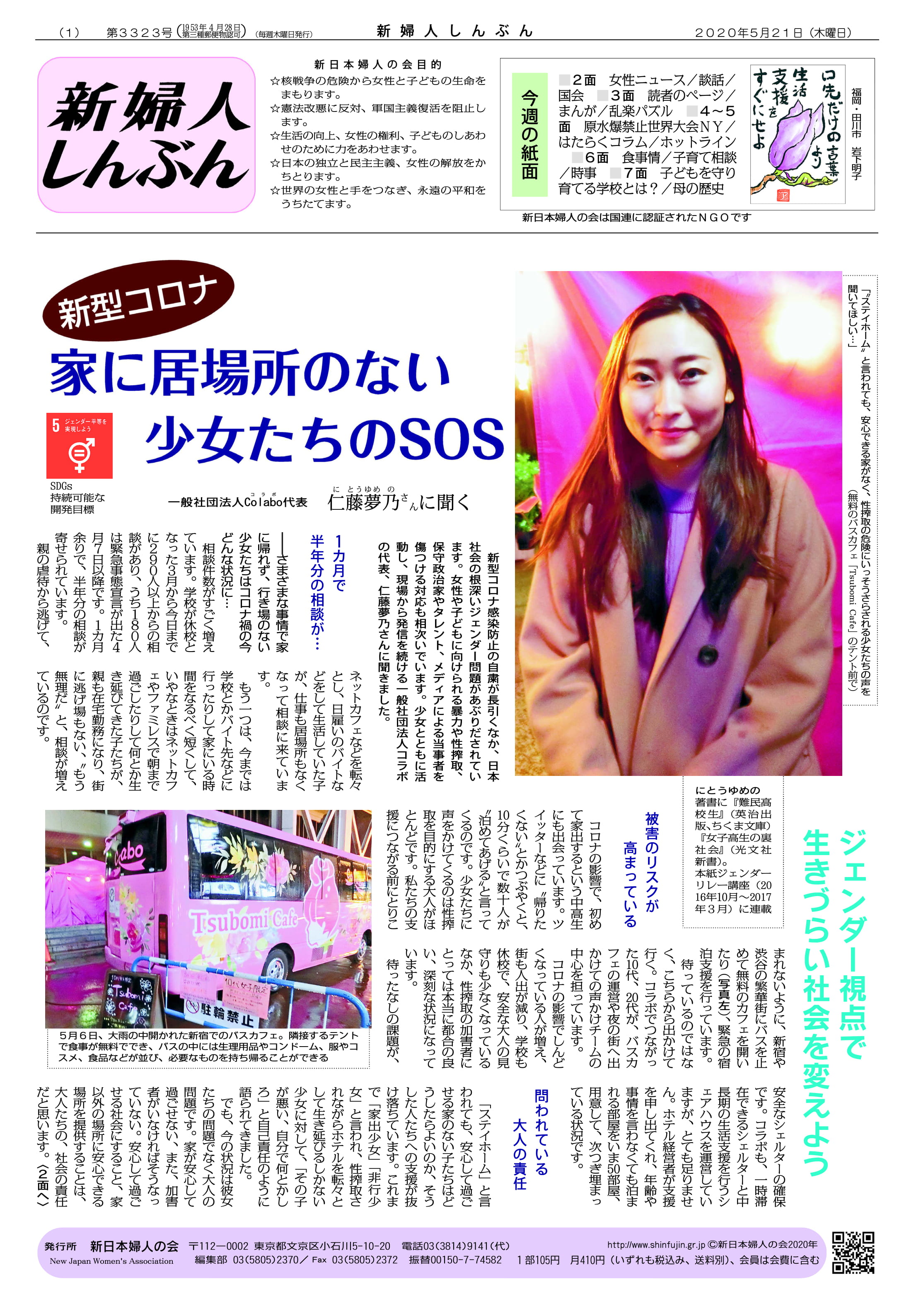 新型コロナ感染防止の自粛が長引くなか、日本社会の根深いジェンダー問題があぶりだされています。女性や子どもに向けられる暴力や性搾取、保守政治家やタレント、メディアによる当事者を傷つける対応も相次いでいます。少女とともに活動し、現場から発信を続ける一般社団法人コラボの代表、仁藤夢乃さんに聞きました。